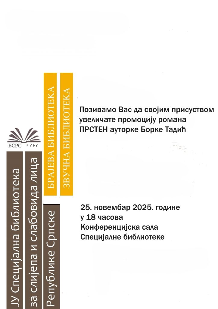 Част нам је и задовољство да Вас позовемо на промоцију романа „Прстен“ ауторке Борке Тадић.
